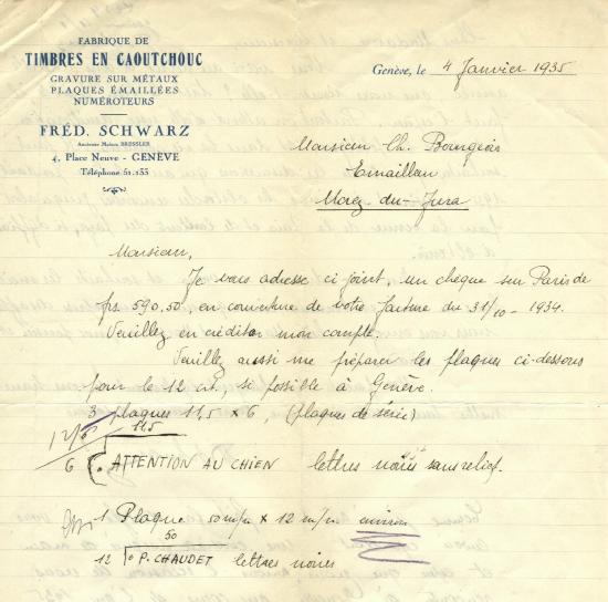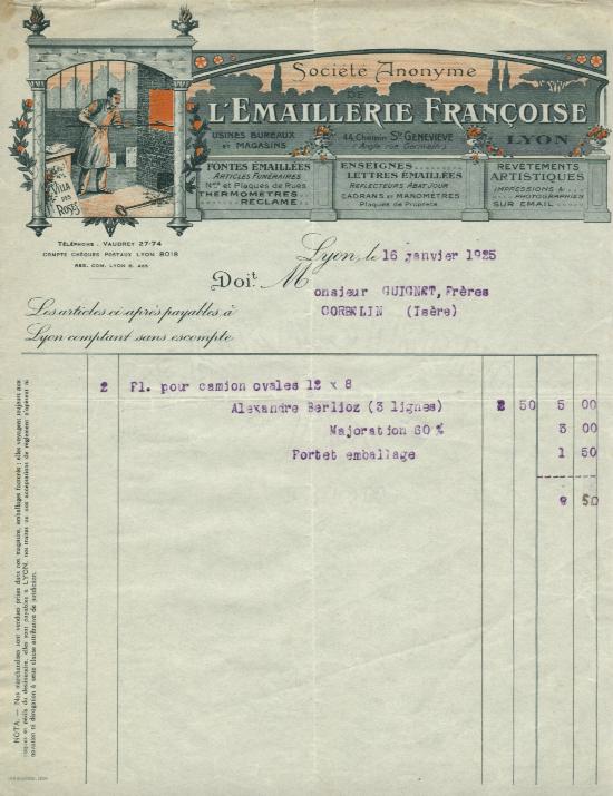 Invoice from Emaillerie Françoise dated 16th January 1925.