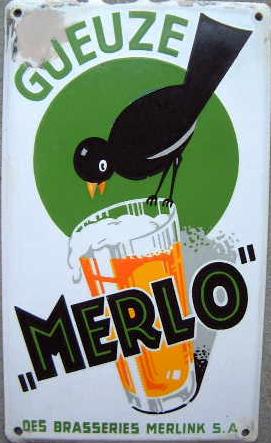 Large edged sign showing a boy with his hair à la "Tintin" licking a bottle of beer.