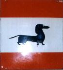 Edged sign with fixing ears. 97 x 37 cm. 1950's