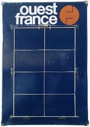 Double-sided sign with right angle. 49,5 x 33 cm. Also exists a convex sign, same size.